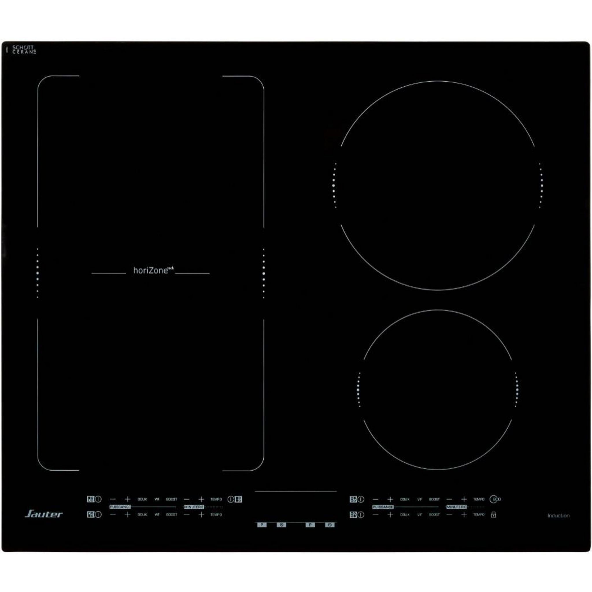Sauter SPI6467B Table de cuisson à induction Sauter SPI6467BHorizoneHorizone offre la modularité absolue. Cet espace accueille votre poissonnière, vos grands faitouts, ou encore plusieurs récipients. Il peut être dissocié en 2 foyers autonomes en conservant une répartition de température optimale.Ho