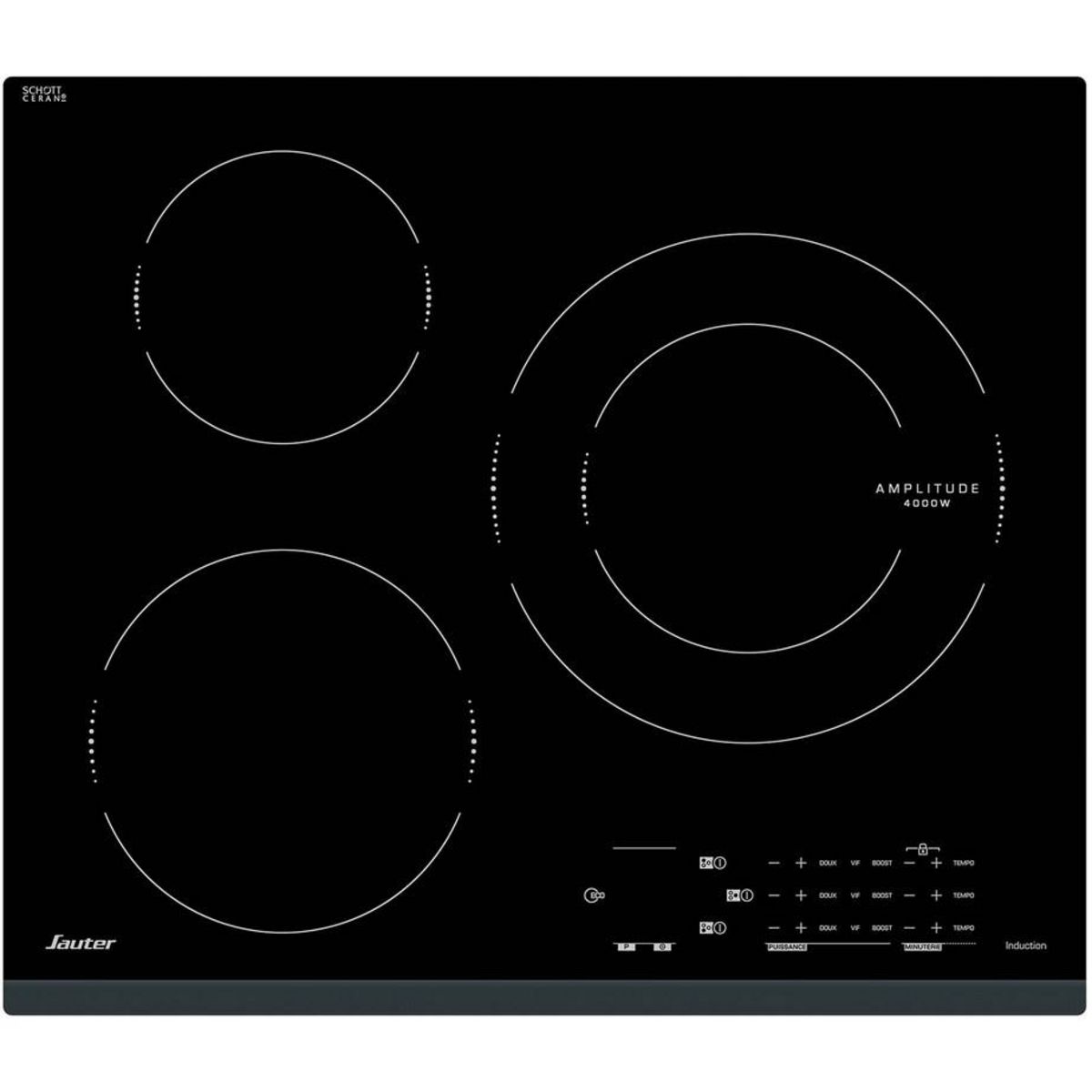 3 foyers dont 1 zone Amplitude Ø 28 cm 4 kW.