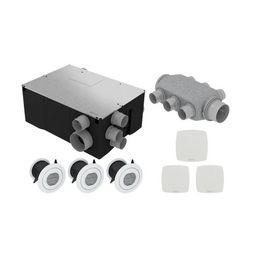 - Accessoires fournis : 1 Caisson VMC avec échangeur haut rendement et son by-pass, siphon intégré 1 double commande PV/GV et ouverture/fermeture du by-pass - 1 caisson distribution air neuf avec piquages TWISTet,GO - 4 bouches insufflation réglables Ø 80 mm - 2 bouches extraction sanitaire Ø 80 mm - 1 bouche extraction cuisine Ø 125 mm - 4 piquages TWISTet,GO avec régulateur Ø 80 mm - 1 piquages TWISTet,GO cuisine avec régulateur Ø 125 mm - 3 piquages TWISTet,GO Ø 125 mm - 1 indicateur de changement filtres - 2 filtres G4 - colliers de serrage - 1 Notice