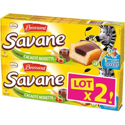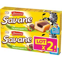 Ingrédients : Sucre, huiles et graisses végétales : colza - palme - tournesol, OEUFS frais, farine de BLÉ 19,2%, stabilisant : glycérol, NOISETTES 2,5%, LAIT écrémé en poudre, sirop de glucose-fructose, gomme d'acacia (fibre soluble), cacao maigre en poudre 1,1%, poudres à lever : diphosphates - carbonates de sodium, conservateur : sorbate de potassium, fibres de BLÉ, sel, gélifiant : gomme xanthane, émulsifiant : lécithines de SOJA, arôme.