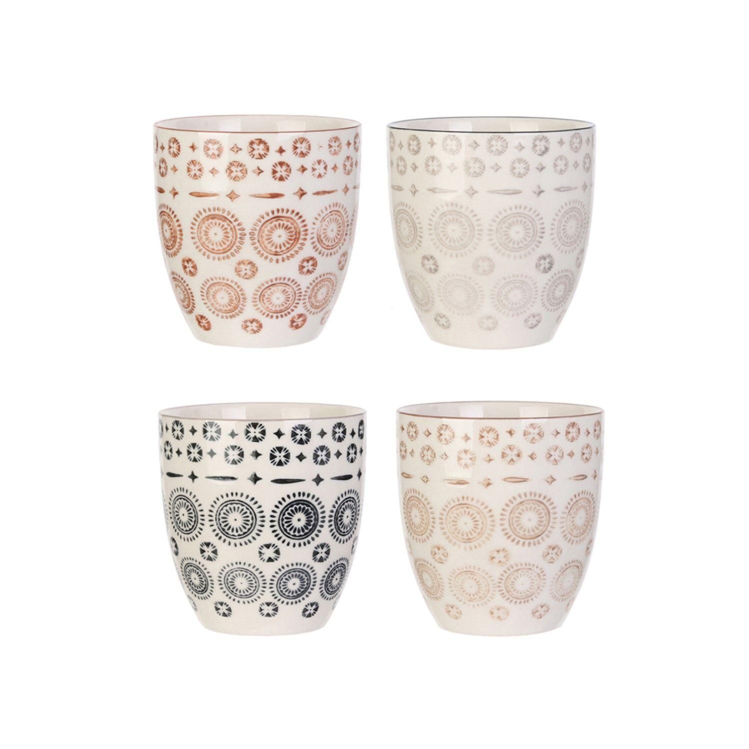 4 Mugs design ethnique Mirage - 250 ml - Blanc