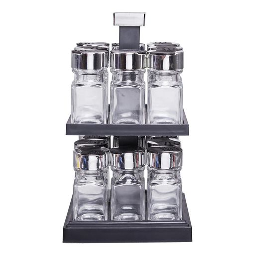 Optez pour ce carrousel à épices pratique et design pour ranger vos épices.FICHE TECHNIQUE- Support rotatif en plastique.- Contient 16 pots à épices de 10 cl en verre.- Pots à épices à double clapet.CARACTERISTIQUES TECHNIQUES- Dimensions : Longueur 16 x Largeur 16 x Hauteur 29 cm.- Poids : 3 kg.