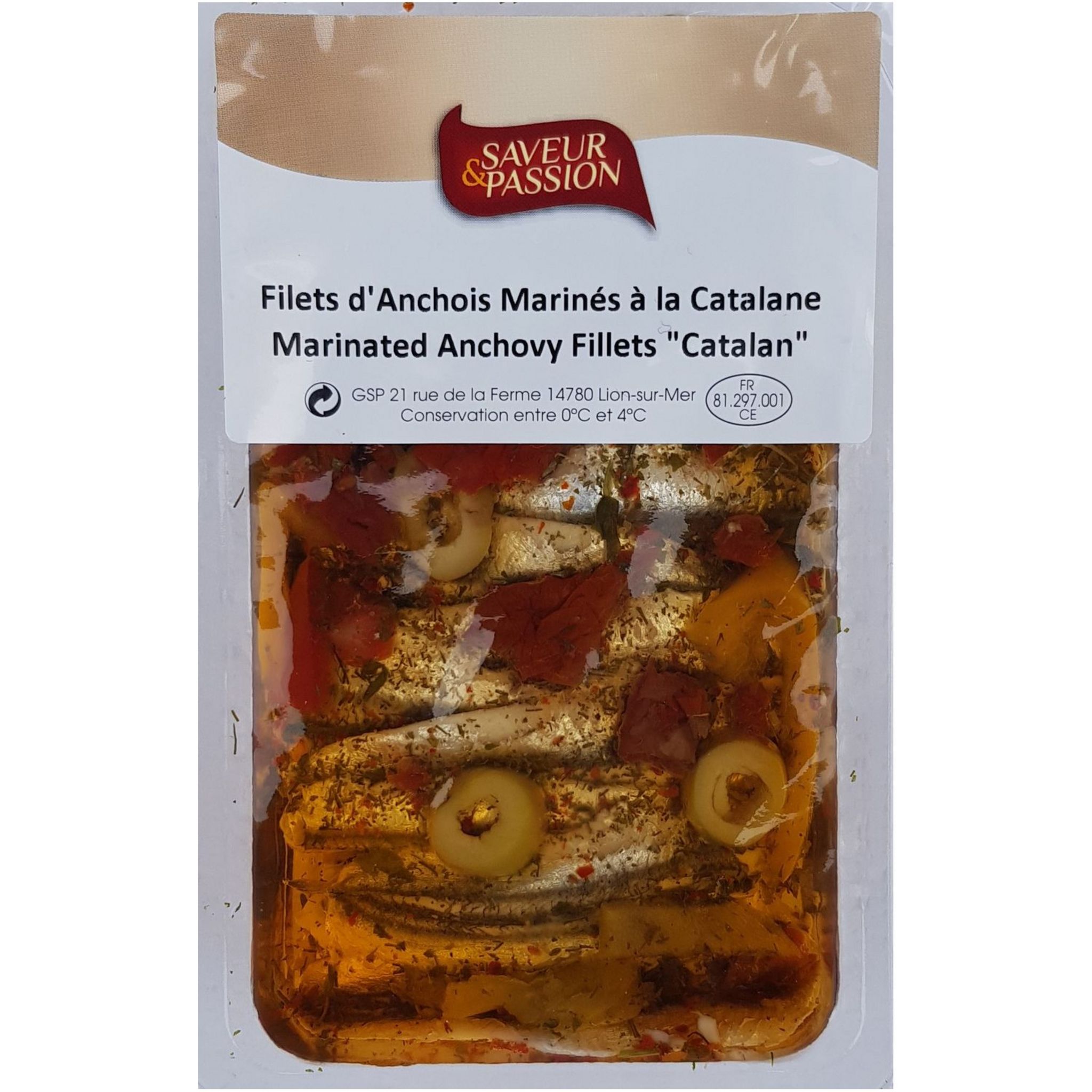 "Filet d’anchois (Engraulis encrasicolus) (poisson) marinés 65 % (filets d’anchois, eau, sel, , vinaigre