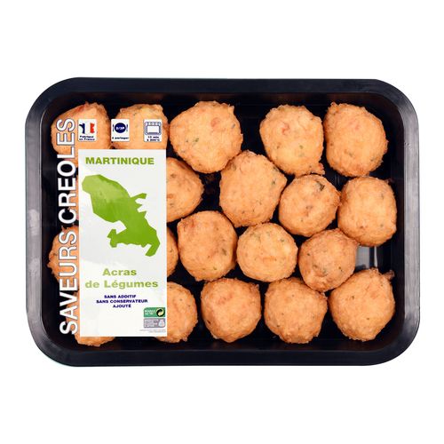 Préparation à base de légume, cuits en friture Les acras de légumes sont de petits beignets frits aux légumes, aux herbes, aux épices, plus ou moins relevés au piment de Cayenne. Mise en bouche traditionnelle de la cuisine antillaise et la cuisine guyanaise, servis en apéritif, ou en entrée.