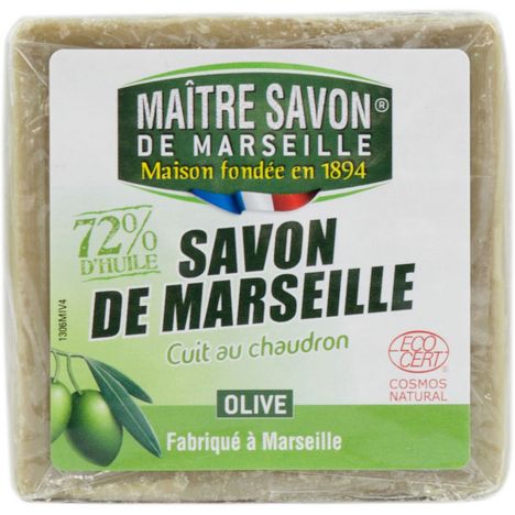 Savon de Marseille cuit au chaudron à l'olive, sans huile de palme, sans graisse animale, sans colorant et sans parfum. Savon de MArseille olive 300G