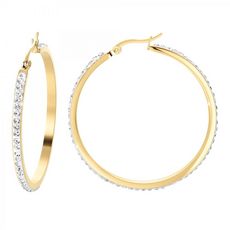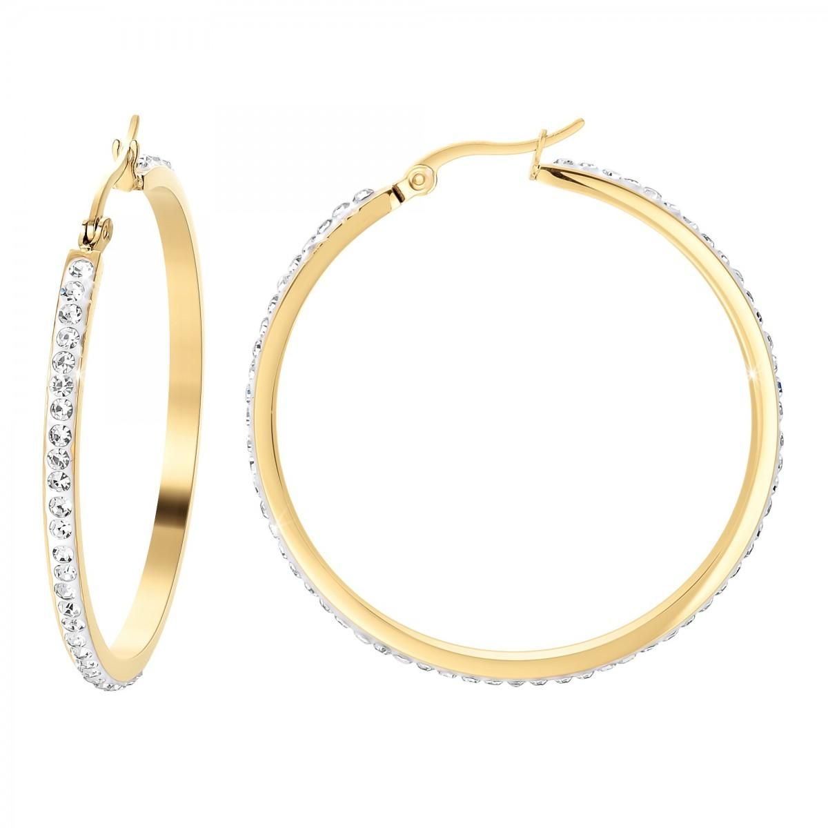 Dans votre boîte à bijoux, les créoles sont des incontournables. Ces créoles en acier inoxydable doré à l'or fin sont à la fois confortables et magnifiques par leur sobriété. La présence de cristaux scintillants pour orner le bijou lui confère une tonalité unique et sophistiquée. Qu'il fasse jour ou nuit, vous pourrez porter ces boucles d'oreilles dont le scintillement des cristaux saura attirer l'attention sur vous et qui deviendront le complément parfait à vos tenues, qu'elles soient habillées ou décontractées.