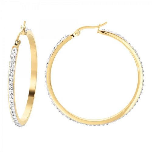 Boucles d'oreilles par SC Bohème.Ornées de Cristaux scintillants.Acier inoxydable doré à l'or fin.Diamètre : 30mmLargeur : 3mmAttache de type clip.Dans votre boîte à bijoux, les créoles sont des incontournables. Ces créoles en acier inoxydable doré à l'or fin sont à la fois confortables et magnifiqu
