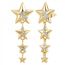 Boucles d'oreilles par SC BohèmeOrnées de ZirconiumAlliage résistant avec plaquage haute résistance doré à l'or fin.Hauteur totale : 31mmDimensions étoile 1 : 11x11mmDimensions étoile 2 : 7x7mmDimensions étoile 3 : 6x6mmDimensions étoile 4 : 4x4mmAttache de type piercing.