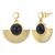 Boucles d'oreilles par SC Bohème ornées d'obsidiennes.Alliage résistant doré à l'or fin.Dimensions pendentif : 20 x 18mmEpaisseur pendentif : 4,5mmAttache de type piercing.