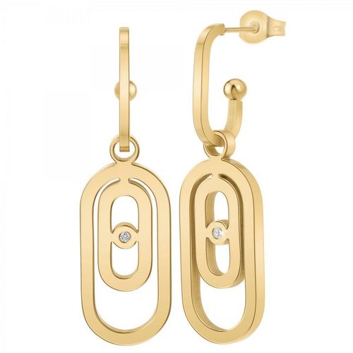 Boucles d'oreilles par SC Bohème.Ornées d'un véritable diamant blancDiamant rond 58 facettes (0.01 carats)Acier inoxydable doré à l'or finHauteur totale : 40mmLargeur : 12mmAttache: Type piercing