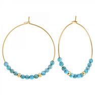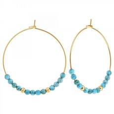 Boucles d'oreilles par SC Bohème ornées de pierres apatiteAcier inoxydable doré à l'or fin.Diamètre : 35mmDimension pierre : 3mmAttache de type crochet.