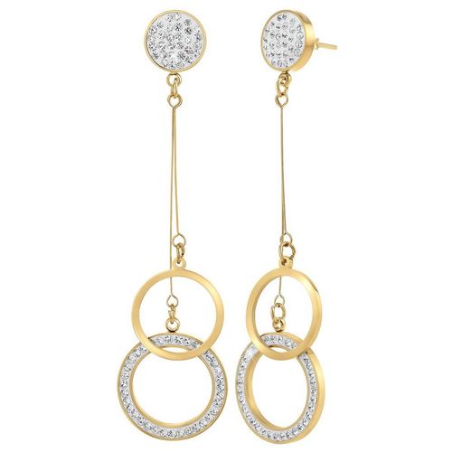 Boucles d'oreilles SC Bohème® ornées de cristauxAcier inoxydable doré à l'or finHauteur totale : 70mmDimensions rond : 15x15mmDimensions rond strassé : 18x18mmAttache: Piercing.