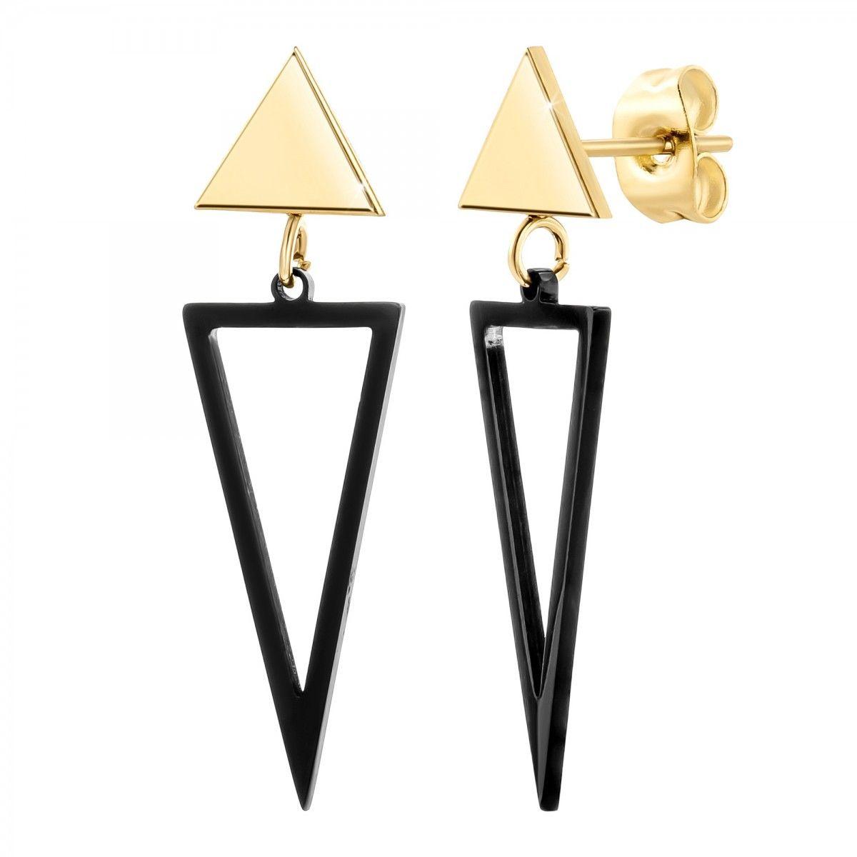 Les boucles d'oreilles ont la capacité de changer radicalement l'aspect final de toute tenue, ce qui en fait un accessoire indiscutable dans la garde-robe de toute femme. Ce magnifique bijou est composé d'une petite flèche en acier inoxydable dorée à l'or fin qui est reliée à un triangle inversé noir. En fait, c'est son design qui fera de vous une femme avant-gardiste, moderne et de caractère, ce qui vous permettra de vous démarquer. C'est l'accessoire idéal pour les plus audacieuses, celles qui n'ont pas peur de prendre des risques à vouloir se faire remarquer.