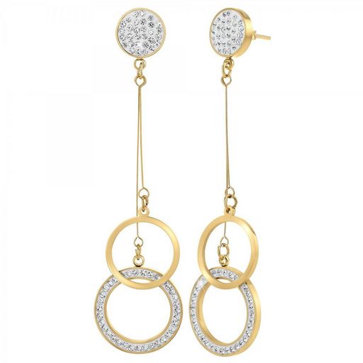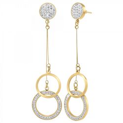 Boucles d'oreilles par SC Bohème.Ornées de Cristaux scintillants.Acier inoxydable doré à l'or fin.Hauteur totale : 70mmDimensions rond : 15x15mmDimensions rond strassé : 18x18mmAttache: Piercing.