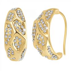 Boucles d'oreilles par SC BohèmeOrnées de Cristaux scintillants.Alliage résistant avec plaquage haute résistance doré à l'or fin.Hauteur totale : 28mmLargeur : 12mmAttache de type crochet.