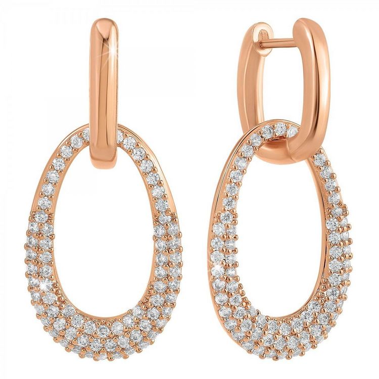 Boucles d'oreilles par SC BohèmeOrnées de Cristaux scintillants.Alliage résistant avec plaquage haute résistance doré à l'or rose.Hauteur totale : 37mmHauteur pendentif : 28mmLargeur pendentif : 18mmAttache de type clip.