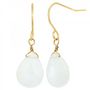Boucles d'oreilles SC Bohème ornées de quartz blanc.Pierres naturelles.Acier inoxydable doré à l'or fin.Largeur pierres : 10mmHauteur : 27mmAttache de type crochet.Chaque perle est unique, peut présenter de légères irrégularités et variation de couleur.