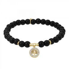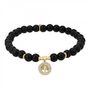 Bracelet SC Bohème Orné de perles noires.Alliage résistant avec plaquage haute résistance doré à l'or fin.Dimension pendentif : 10x10mmDimensions boules : 6x6mmLongueur : Elastique ajustableChaque perle est unique, peut présenter de légères irrégularités et variation de couleur.