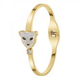 Bracelet félin SC Bohème orné de Cristaux scintillants Acier inoxydable doré à l'or fin.Dimensions pendentif : 16x18mmDiamètre : 60x50mmLargeur : 4mmFermoir : à ouverture