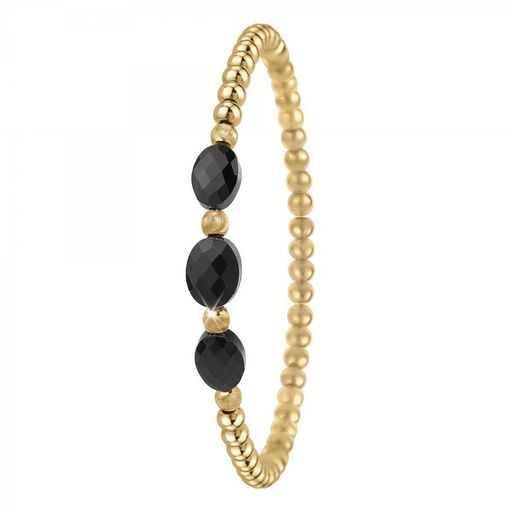 Bracelet SC Bohème Orné d'obsidiennes noiresAlliage résistant avec plaquage haute résistance doré à l'or fin.Dimensions pendentifs : 6x8x4mmDimensions boules : 4x4mmLongueur : Elastique ajustableFermoir : N/AChaque perle est unique, peut présenter de légères irrégularités et variation de couleur.