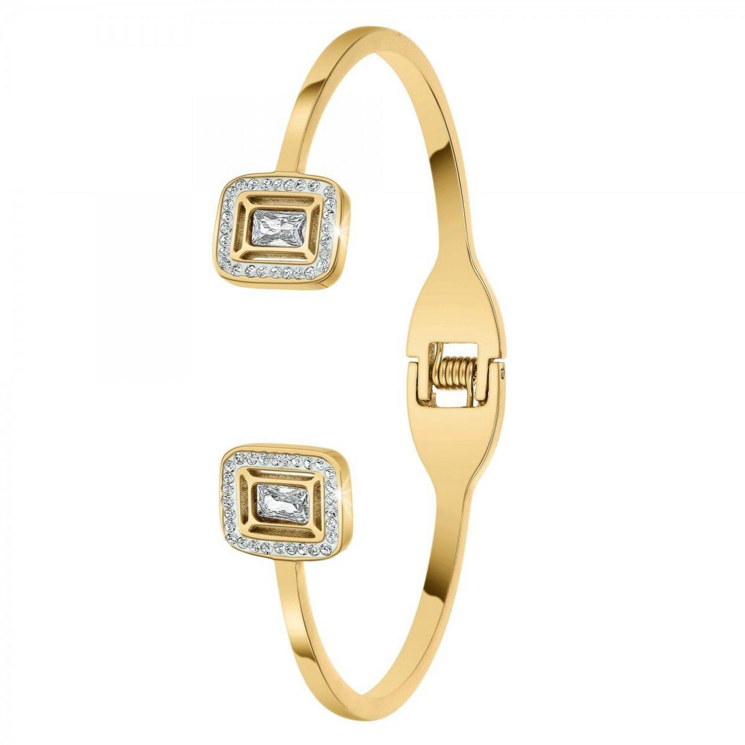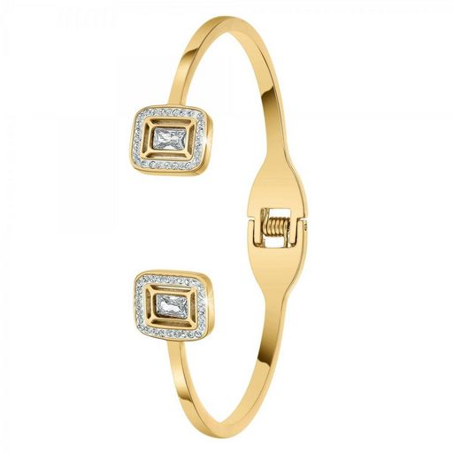 Bracelet SC BohèmeOrné de Cristaux scintillants.Acier inoxydable doré à l'or fin.Dimensions pendentif : 12x10mmDiamètre : 60x50mmLargeur : 3mmFermoir : à ouverture