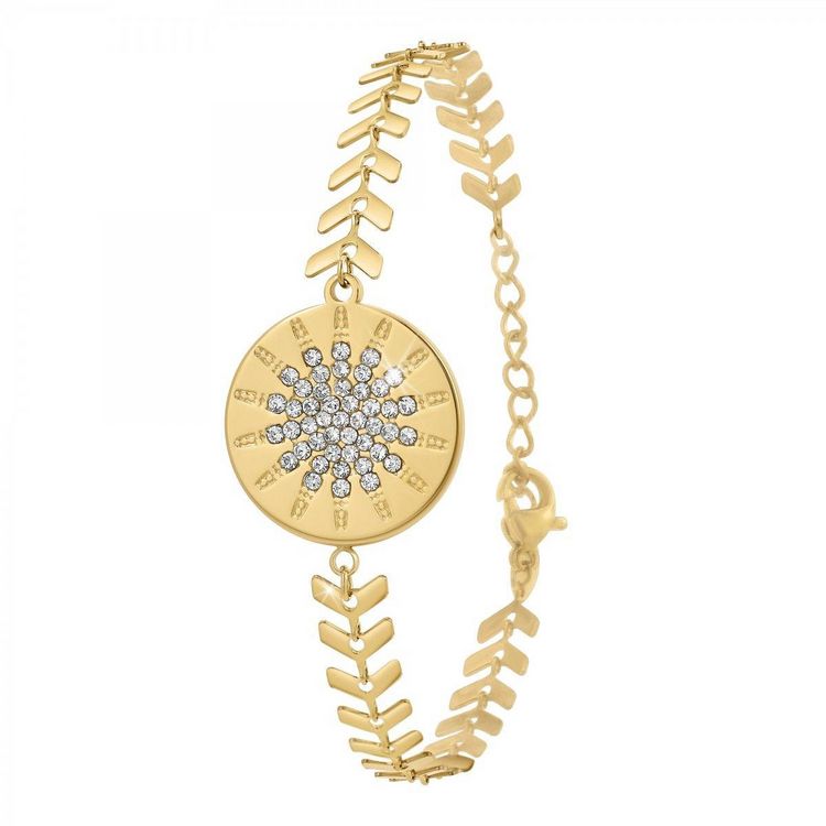 Bracelet SC BohèmeOrné de Cristaux scintillants.Acier inoxydable doré à l'or fin.Longueur bracelet : 16 cm (+3cm de rallonge)Hauteur pendentif : 20mmLargeur pendentif : 20mmLargeur maille : 6mmFermoir : à mousqueton