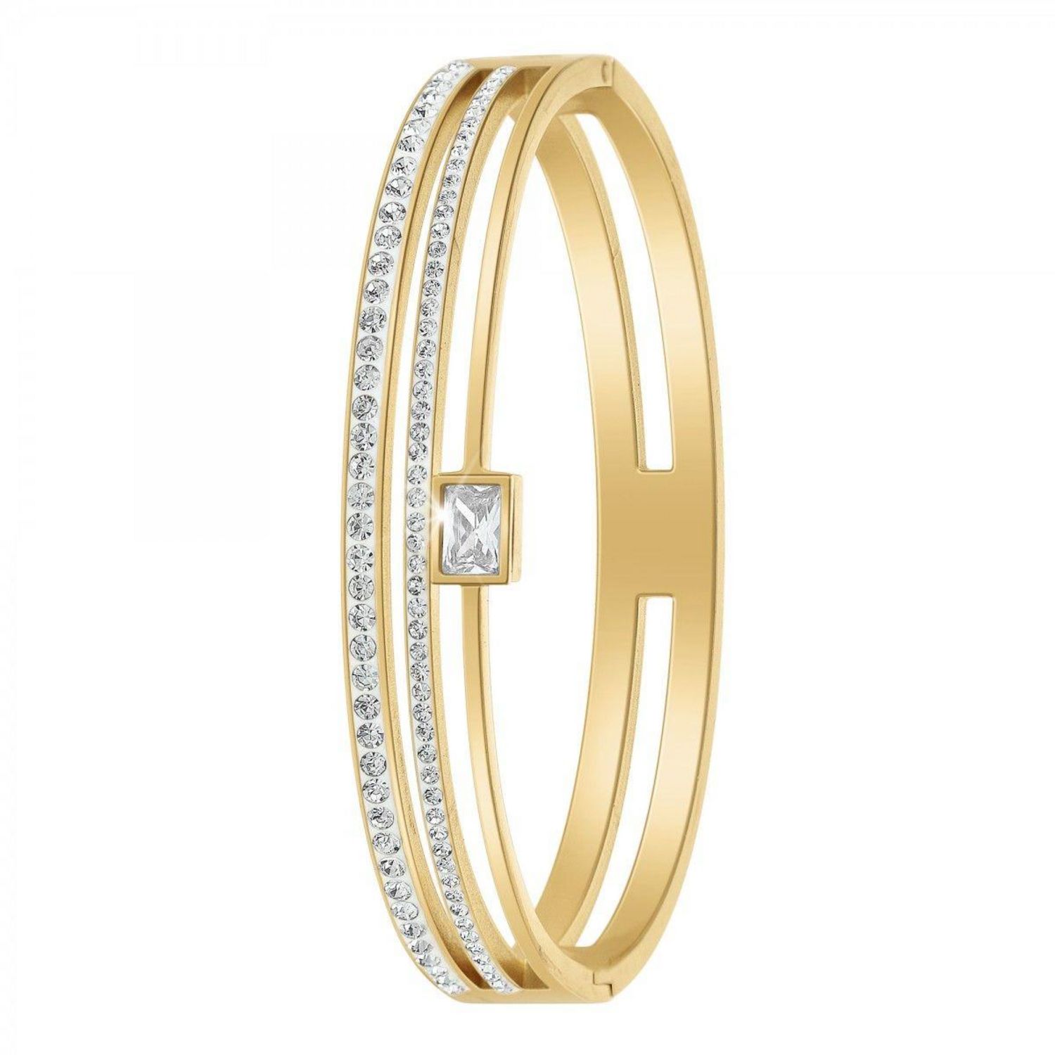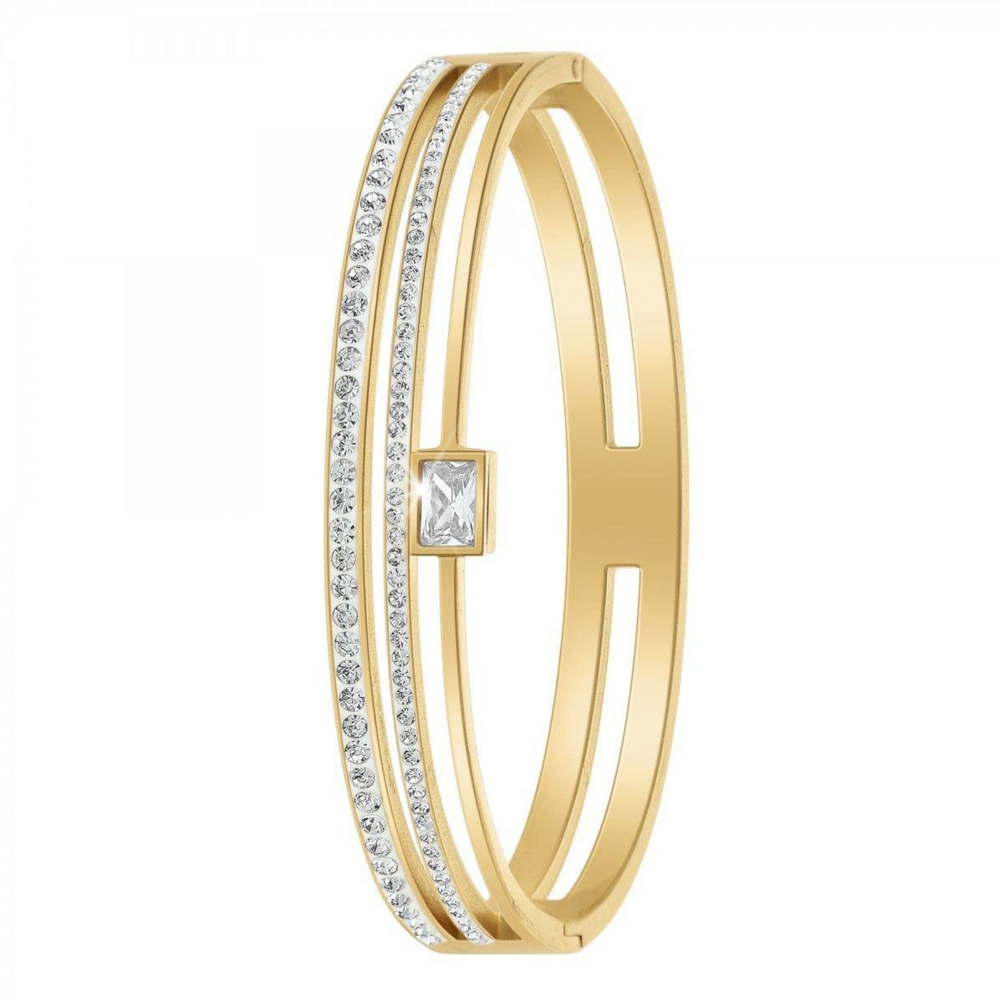 Bracelet SC BohèmeOrné de Cristaux scintillants.Acier inoxydable doré à l'or finHauteur bracelet : 10mmDiamètre : 60x50mmFermoir : Clip