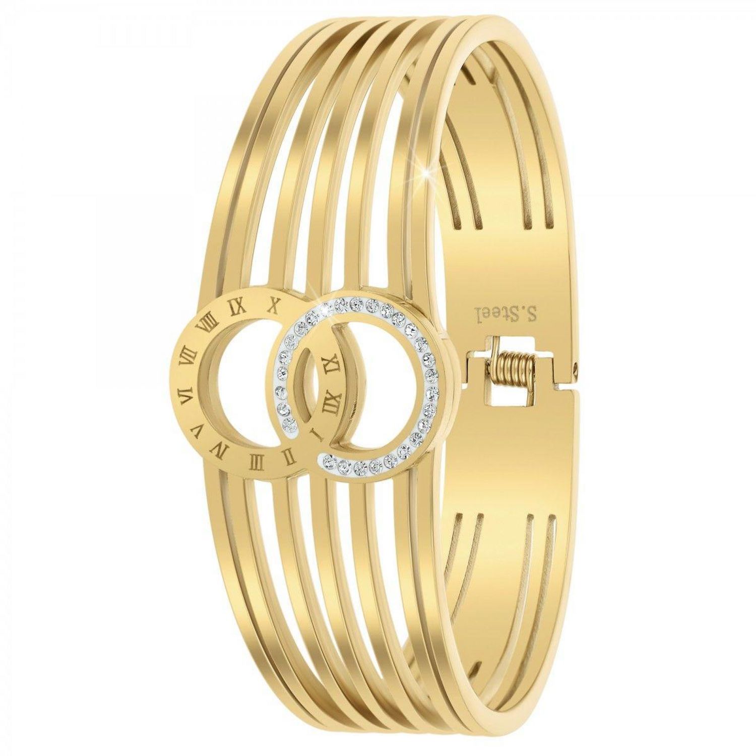 Bracelet SC BohèmeOrné de Cristaux scintillants.Acier inoxydable doré à l'or fin.Hauteur bracelet : 20mmDiamètre : 60x50mmFermoir : à ouverture