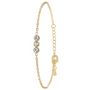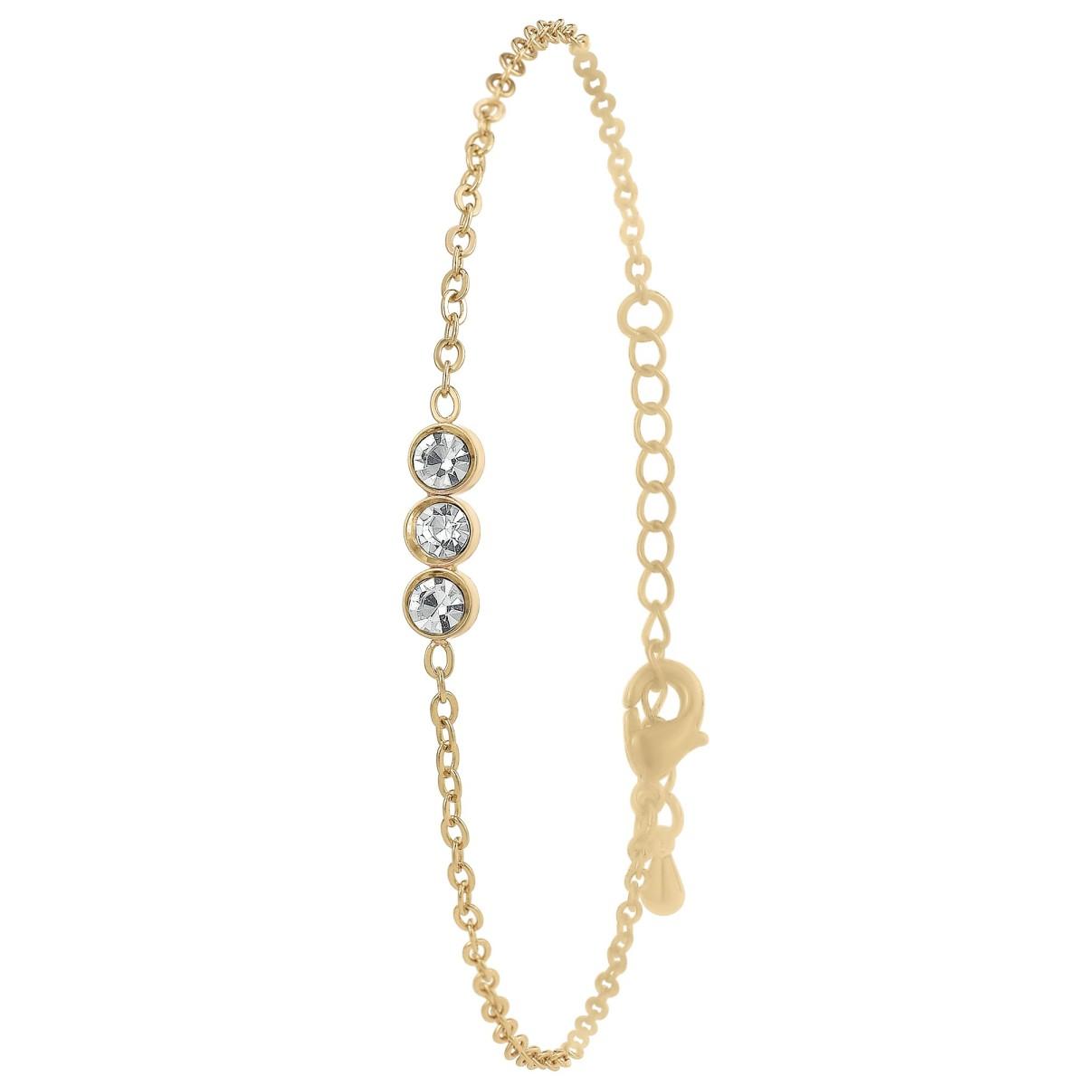 Bracelet SC Bohème® orné de cristauxAlliage résistant avec plaquage haute résistance doré à l'or fin.Dimensions pendentif : 12x3mmLongueur bracelet : 16cm (+4cm de rallonge)Fermoir à mousqueton.