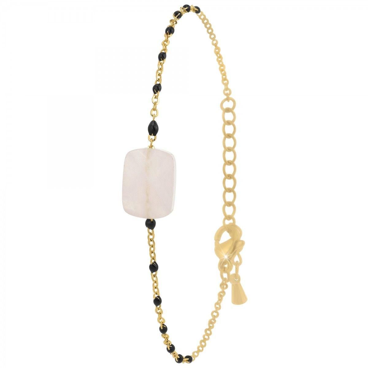 Bracelet SC Bohème orné d'un quartz rosePierre naturelleAcier inoxydable doré à l'or fin.Dimensions pendentif : 11x8x6mmLongueur bracelet : 16cm (+4cm de rallonge)Fermoir à mousqueton.Chaque perle est unique, peut présenter de légères irrégularités et variation de couleur.