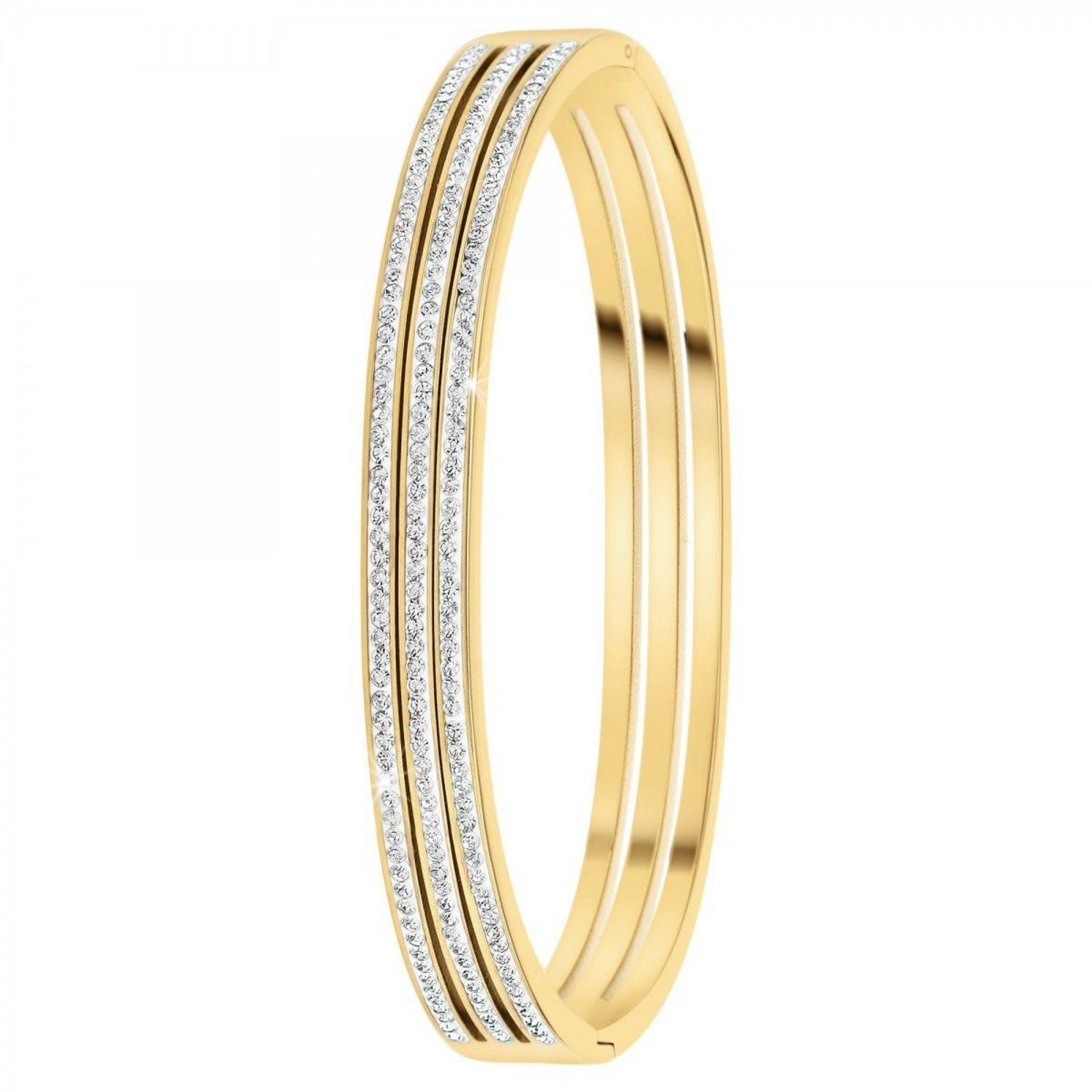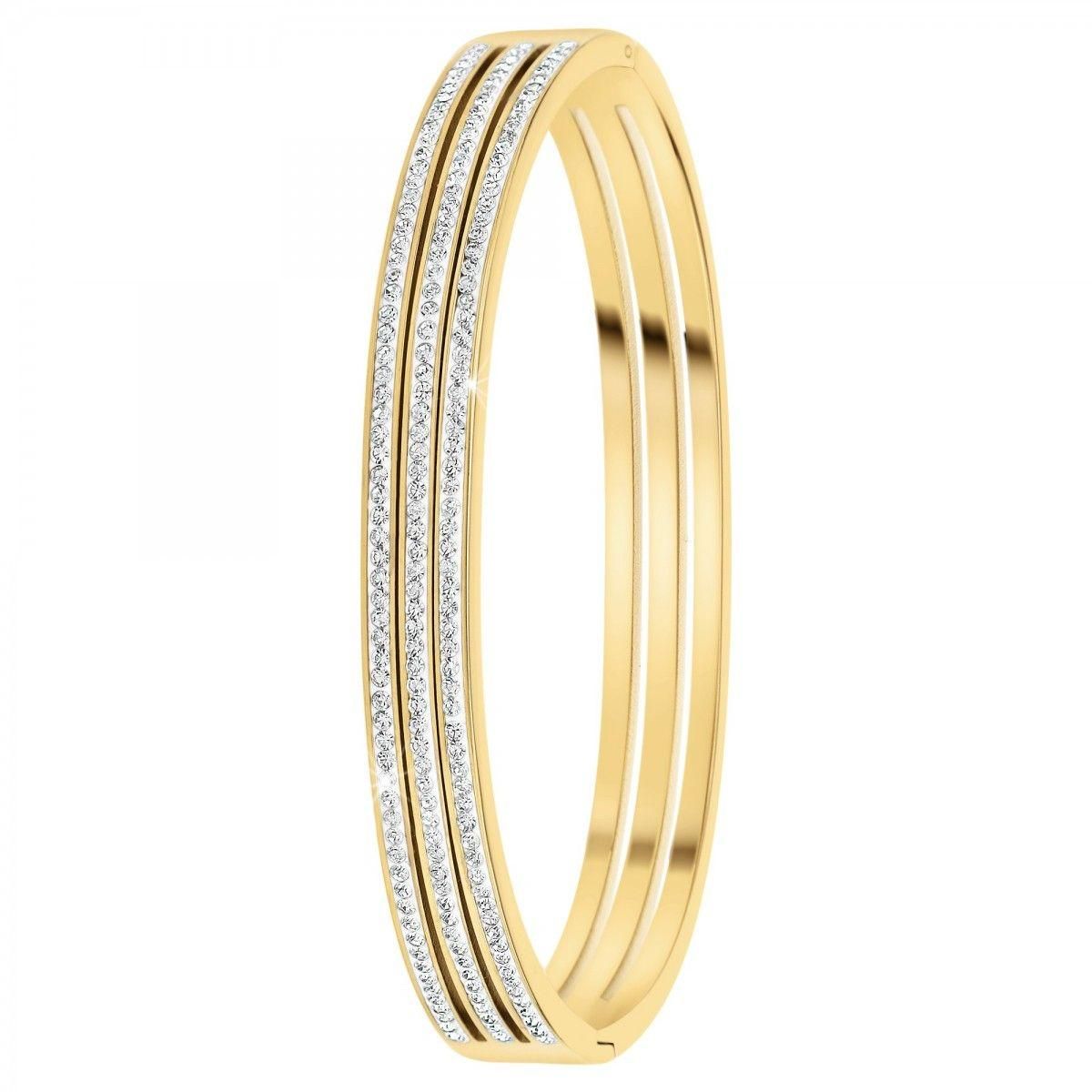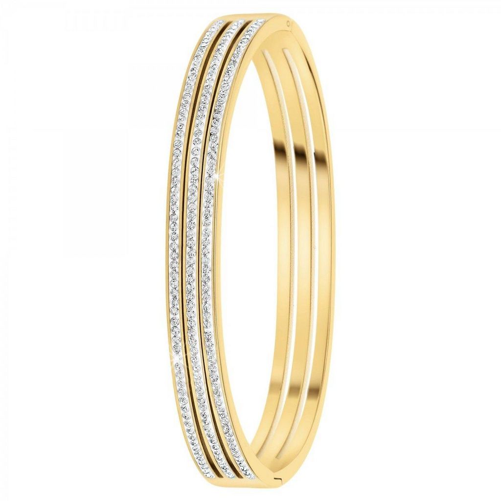 Bracelet par SC Bohème.Orné de Cristaux scintillants.Acier inoxydable doré à l'or fin.Diamètre : 60 mmLargeur : 7mmEpaisseur : 2mm