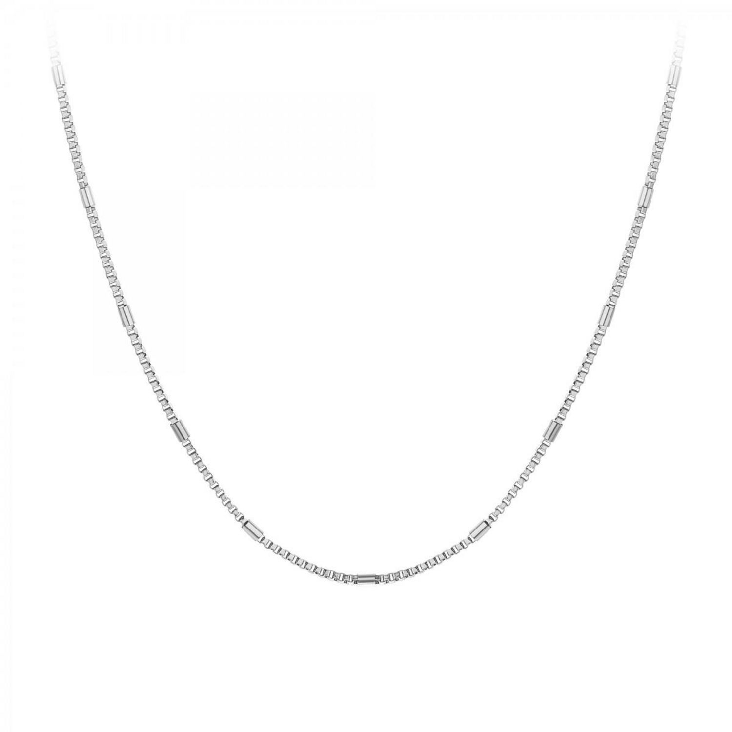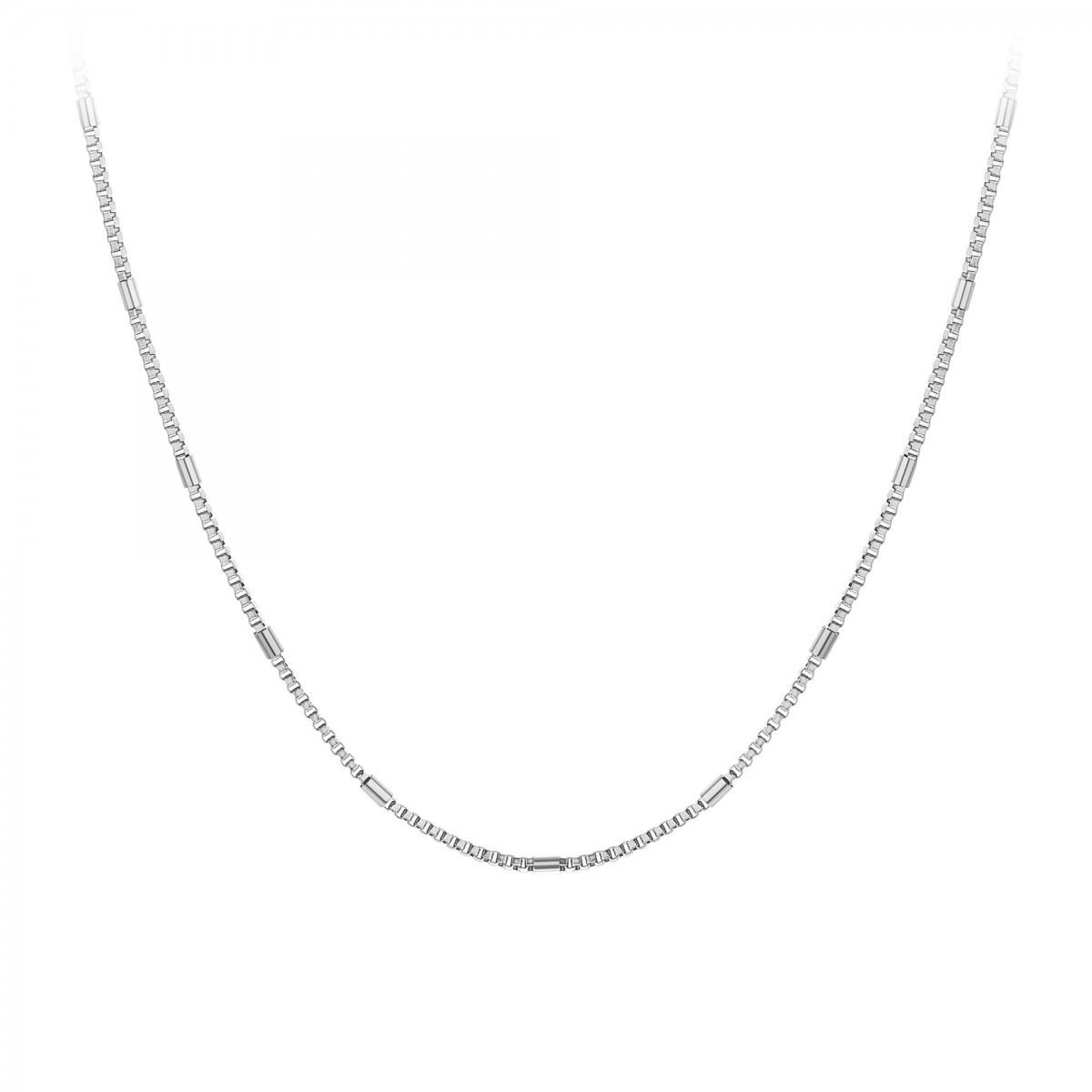 Collier SC Bohème.Acier inoxydable.Largeur maille : 2mmLongueur collier : 35cm (+7cm de rallonge)Fermoir : mousqueton