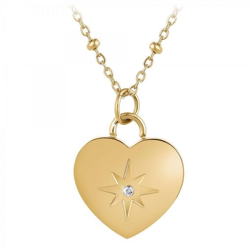 Collier par SC Bohème.Orné d'un véritable diamant blanc.Diamant rond 58 facettes (0.01 carats)Acier inoxydable doré à l'or fin.Longueur collier : 41,5cm (+5,5cm de rallonge)Dimensions pendentif : 15x14mmFermoir à mousqueton.