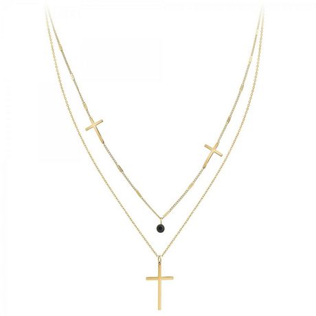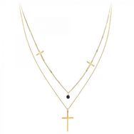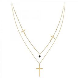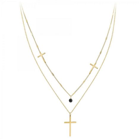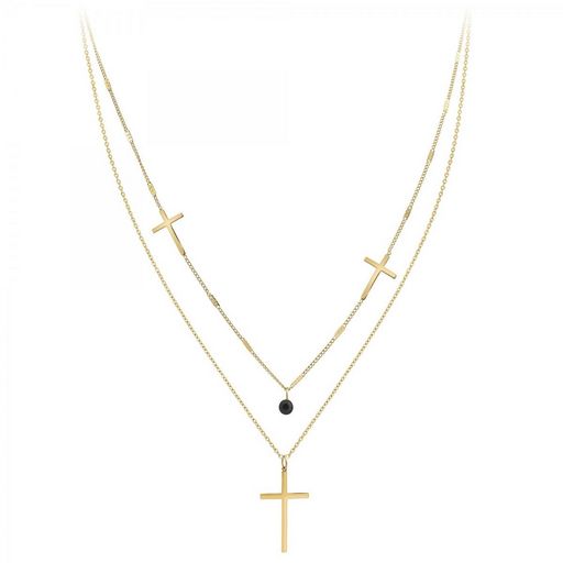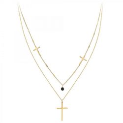 Collier SC BohèmeOrné d'un cristal scintillant.Acier inoxydable doré à l'or fin.Dimensions cristal : 4x4x3mmDimensions petites croix : 9x16x1mmDimensions grande croix : 23x13x2mmLongueur : 42cm (+ 5cm de rallonge)Fermoir : mousqueton
