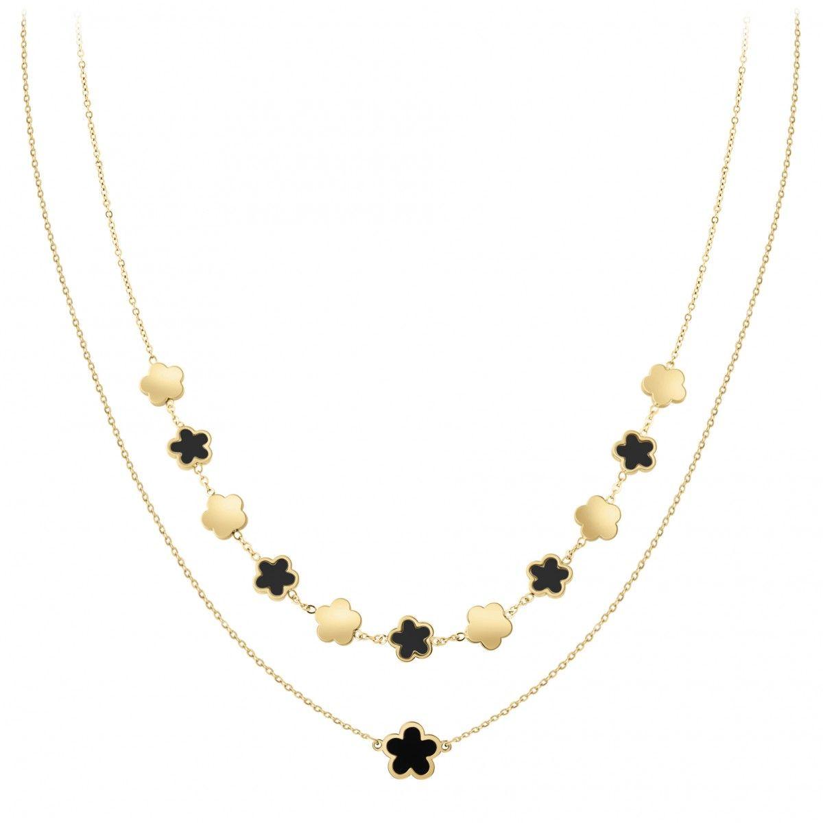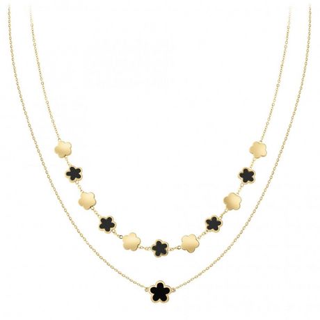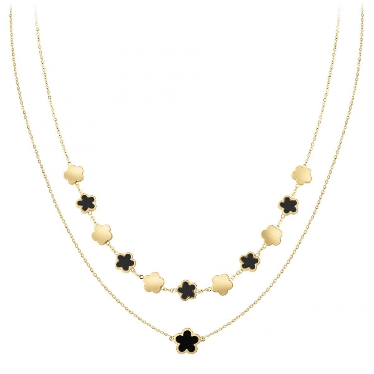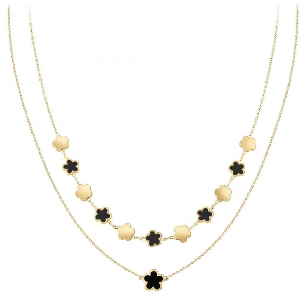 Collier fleurs par SC BohèmeAcier inoxydable doré à l'or fin.Longueur collier : 37cm (+6cm de rallonge)Dimensions petites fleurs : 6x6mmDimensions grande fleur : 10x10mmFermoir à mousqueton.