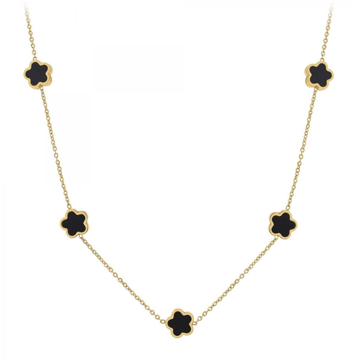 Collier par SC BohèmeAcier inoxydable doré à l'or fin.Longueur collier : 44cm (+5cm de rallonge) Dimensions fleur : 10x10x3mmFleurs réversibles : une face nacrée blanche et une face noireFermoir : mousqueton.