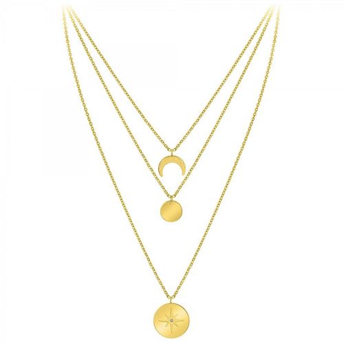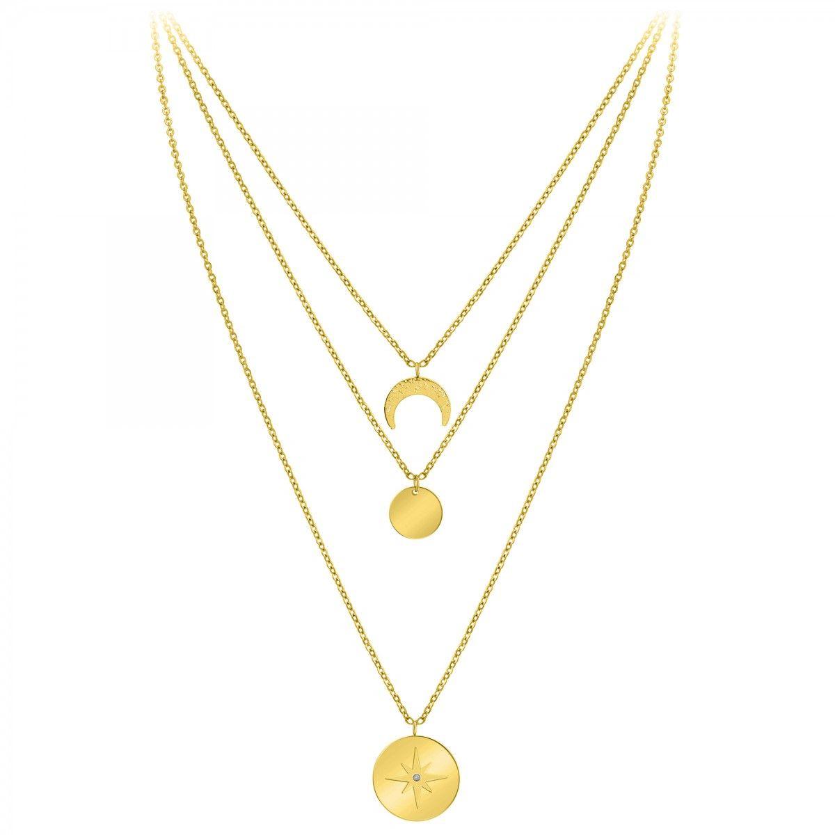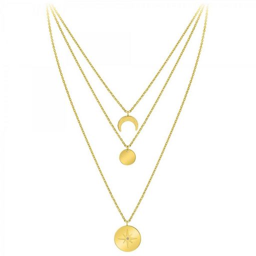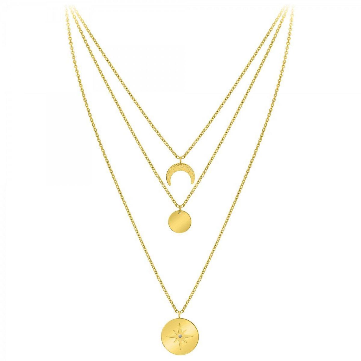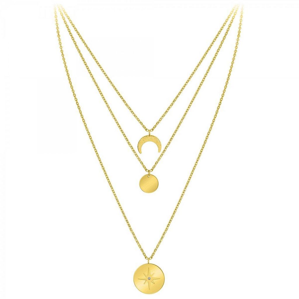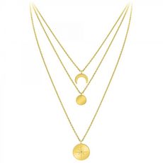 Collier par SC BohèmeOrné d'un véritable diamant.Diamant rond 58 facettes (0.01 carats)Acier inoxydable doré à l'or fin.Longueur collier : 39cm (+5cm de rallonge)Dimensions pendentif 1 : 15x15 mmDimensions pendentif 2 : 13x13 mmDimensions pendentif 3 : 20x20 mmFermoir à mousqueton.