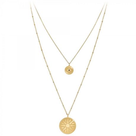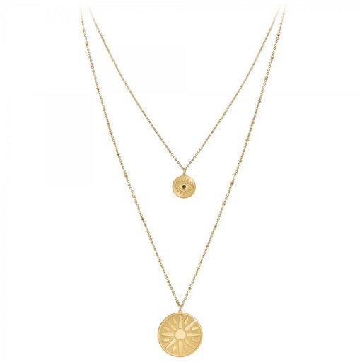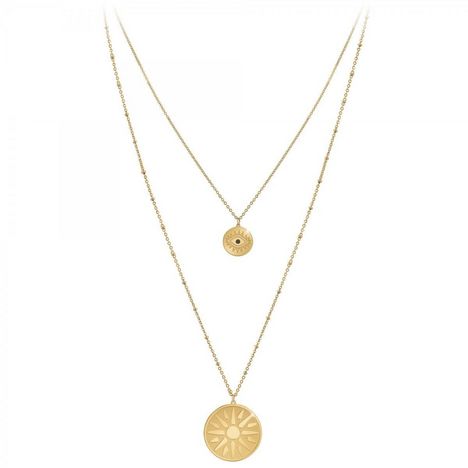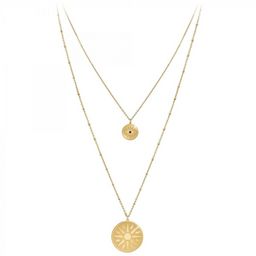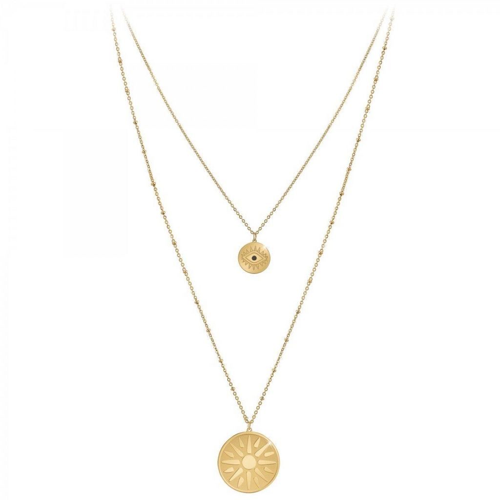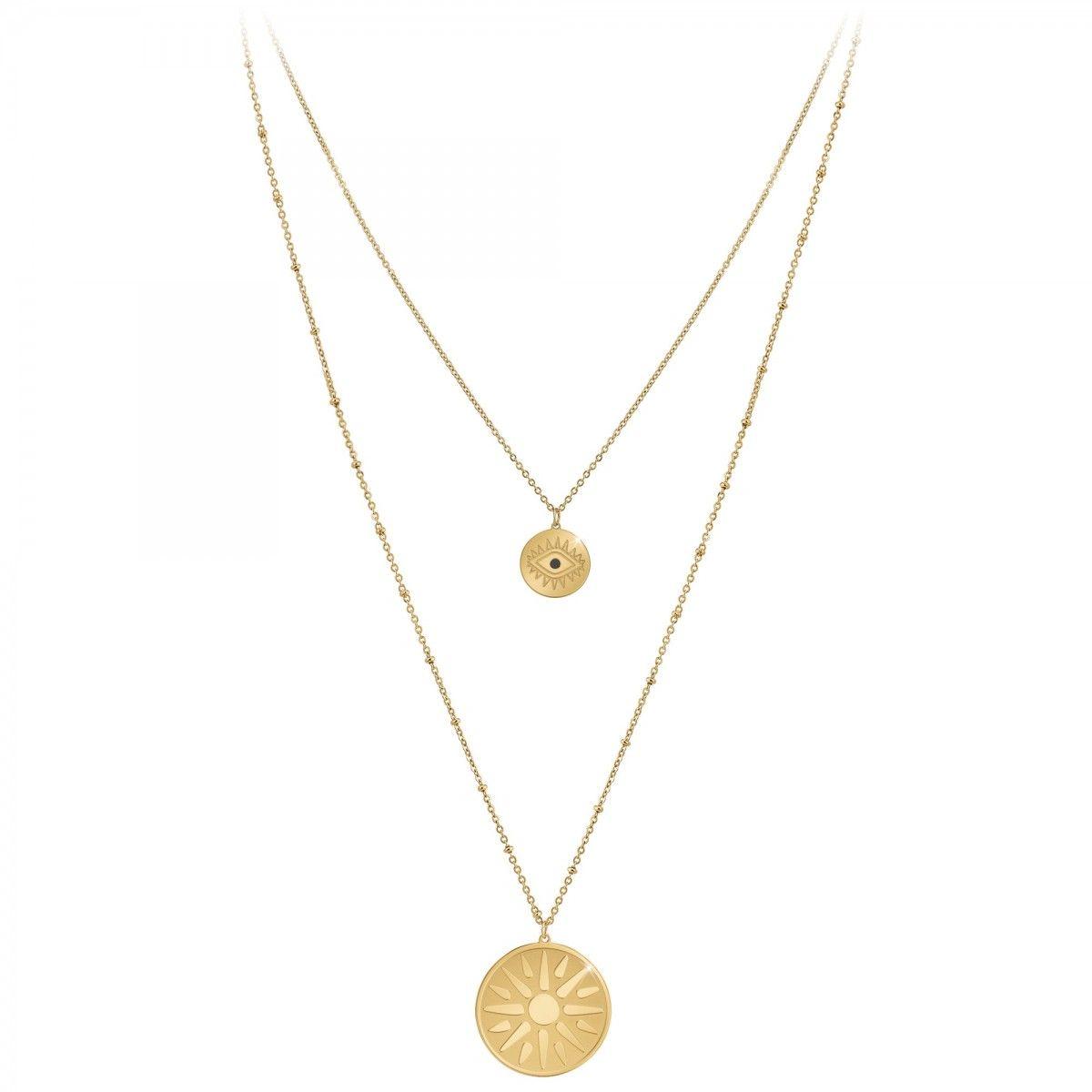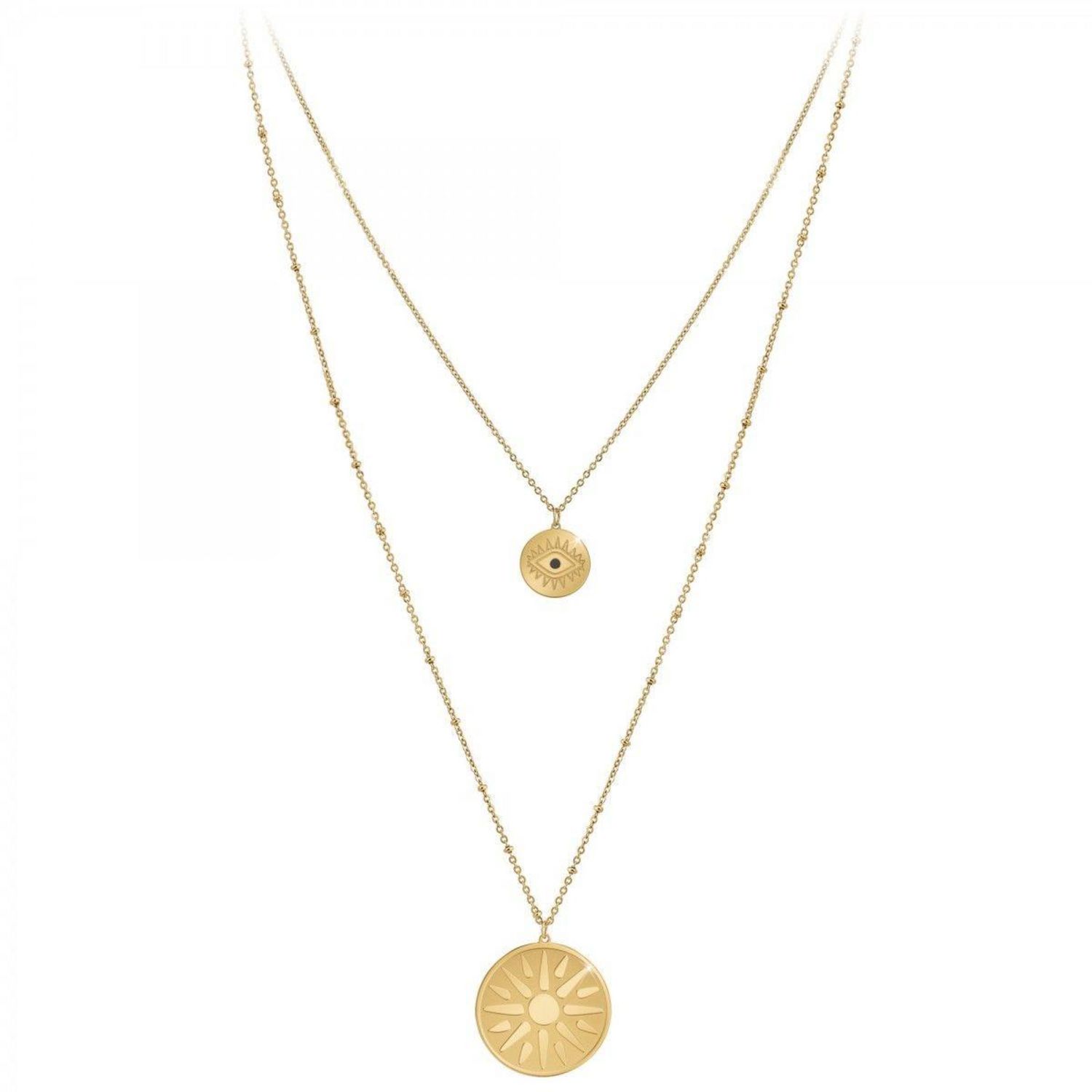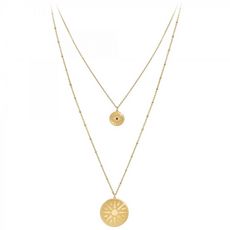 Collier SC BohèmeAcier inoxydable doré à l'or fin.Longueur collier : 38cm (+5cm de rallonge)Dimensions pendentif 1 : 15x15mmDimensions pendentif 2 : 30x30mmFermoir à mousqueton.