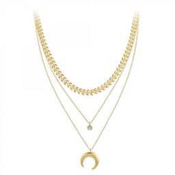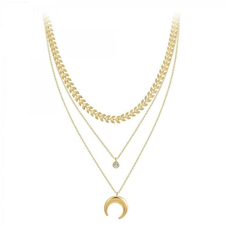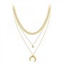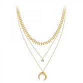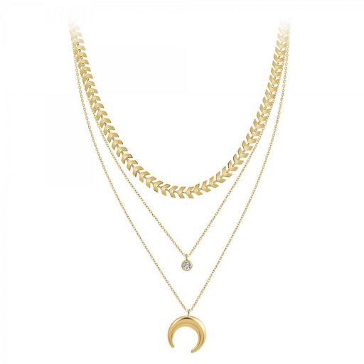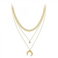 Collier SC BohèmeOrné d'un cristal scintillant.Acier inoxydable doré à l'or fin.Hauteur chaine 1 : 6mmDimensions pendentif rond : 6x6x4mmDimensions pendentif lune  : 21x21x4mmLongueur : 38cm (+ 5cm de rallonge)Fermoir : mousqueton