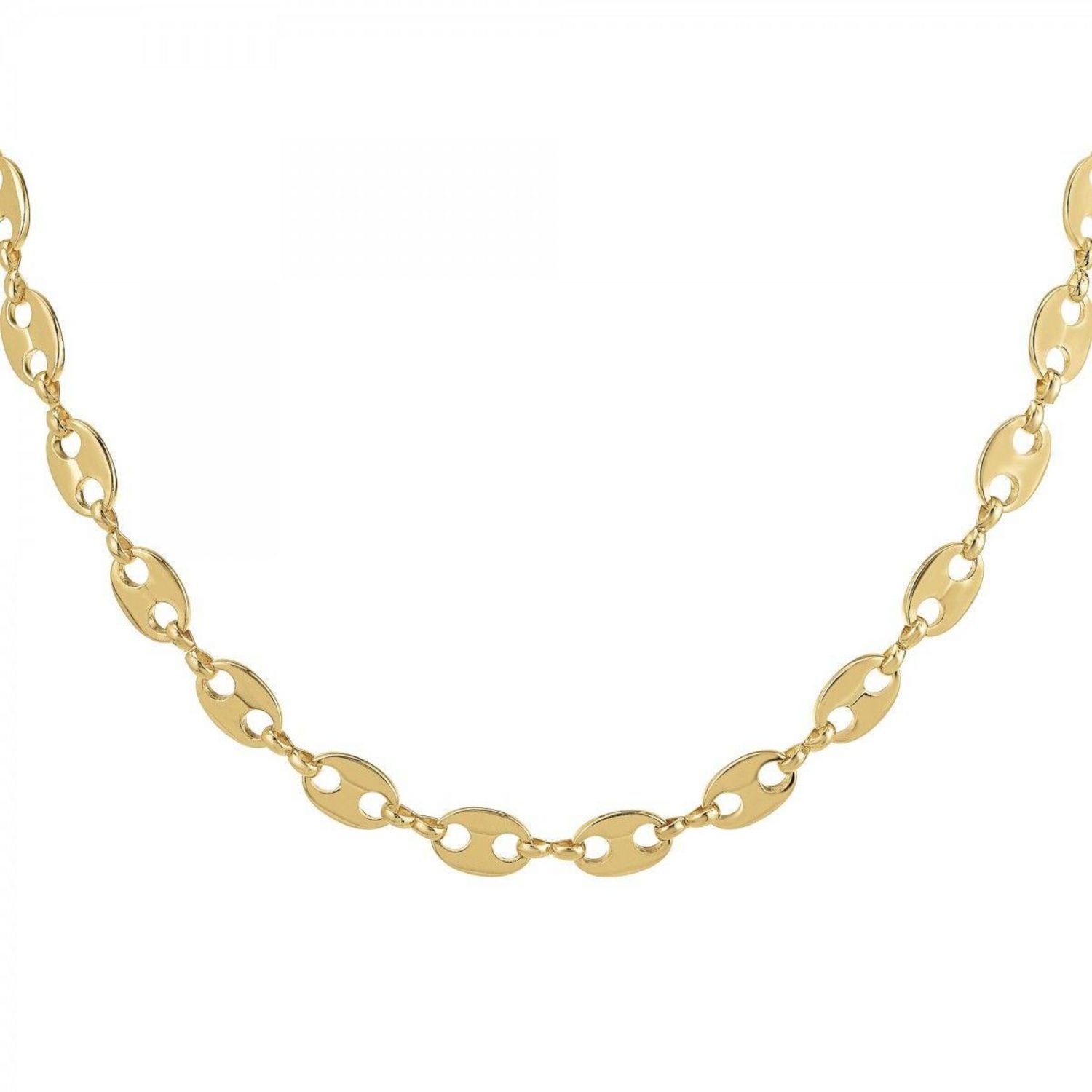 Collier SC Bohème.Alliage résistant avec plaquage haute résistance doré à l'or fin.Largeur maillons : 8mmLongueur collier : 41cm (+ 5cm de rallonge)Fermoir : mousqueton.
