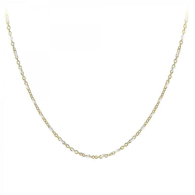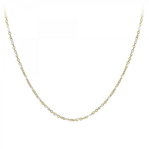 Collier SC Bohème.Décoré de perles en résine.Acier inoxydable doré à l'or fin.Largeur perles : 1,2mmLongueur collier : 35cm (+7cm de rallonge)Fermoir : mousqueton