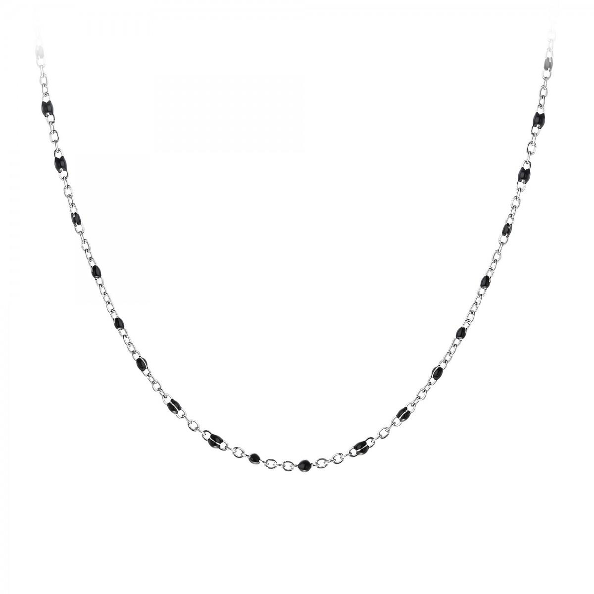 Collier SC Bohème.Décoré de perles en résine.Acier inoxydable.Largeur perles : 1,2mmLongueur collier : 35cm (+7cm de rallonge)Fermoir : mousqueton
