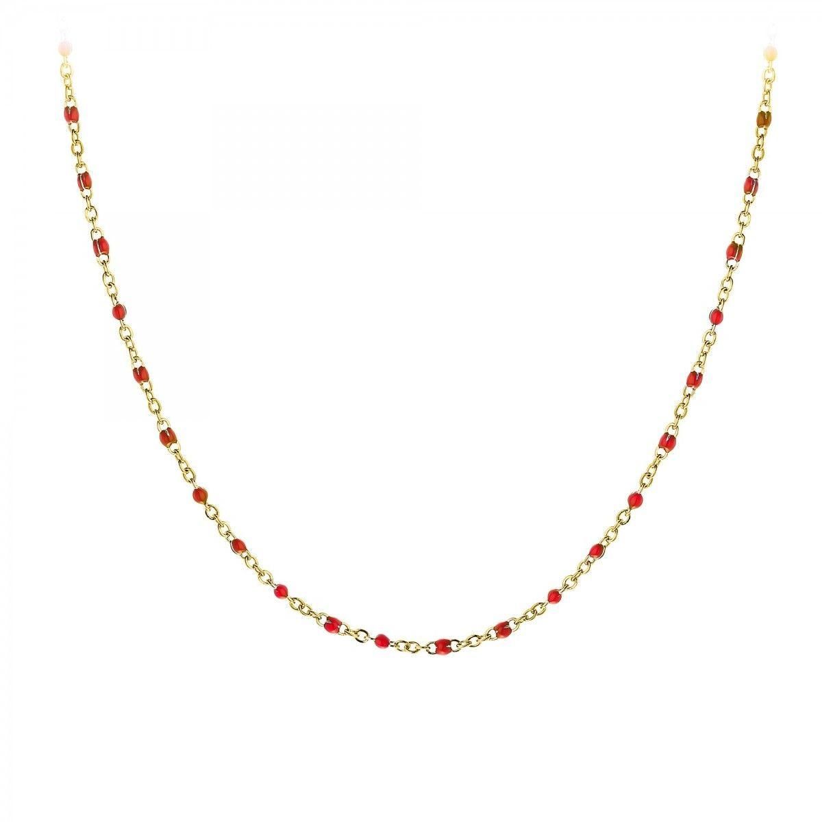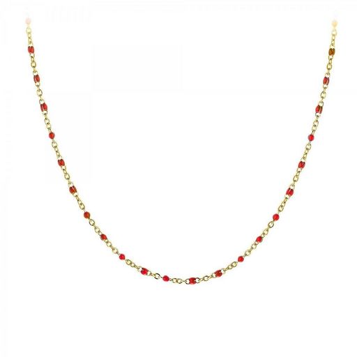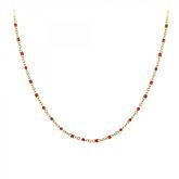 Collier SC Bohème.Décoré de perles en résine.Acier inoxydable doré à l'or fin.Largeur perles : 1,2mmLongueur collier : 35cm (+7cm de rallonge)Fermoir : mousqueton