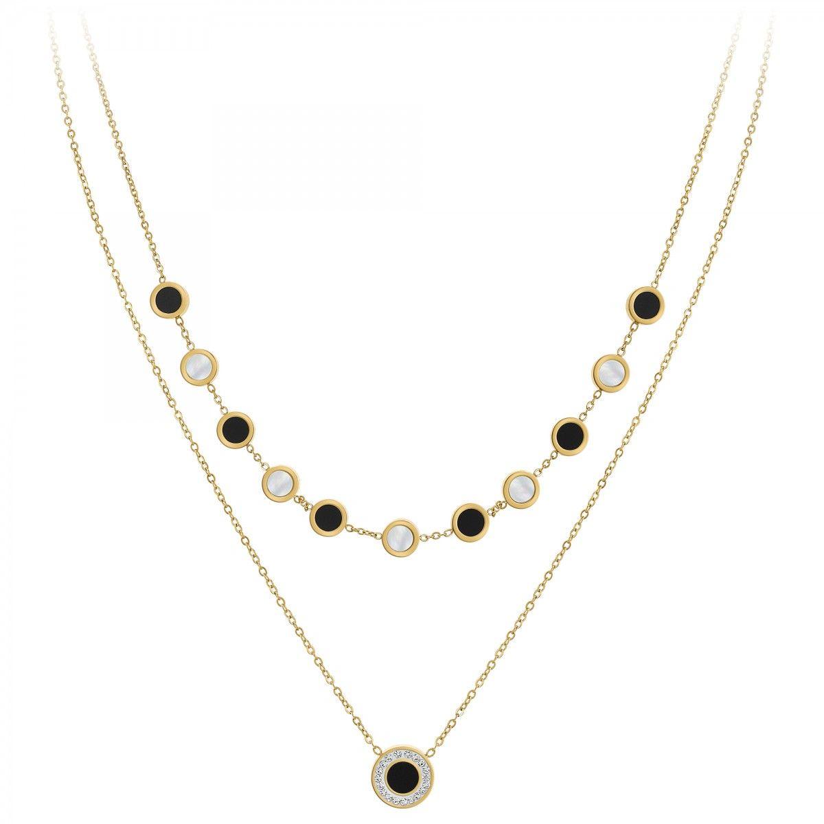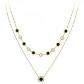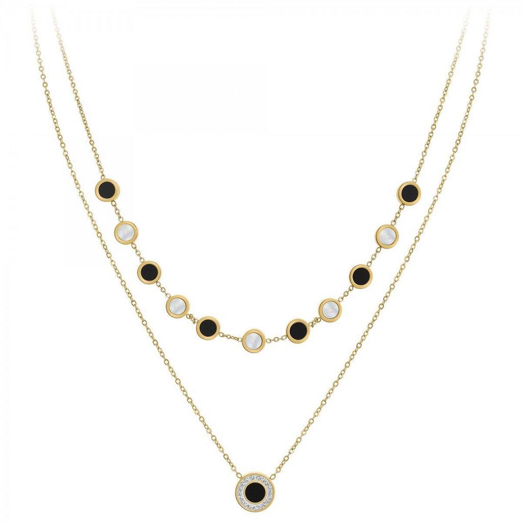 Collier par SC Bohème.Orné de Cristaux scintillants.Acier inoxydable doré à l'or fin.Longueur collier : 38cm (+5cm de rallonge)Dimensions petits pendentifs : 6x6mmDimensions pendentif principal : 10x10mmFermoir à mousqueton.