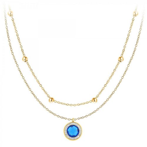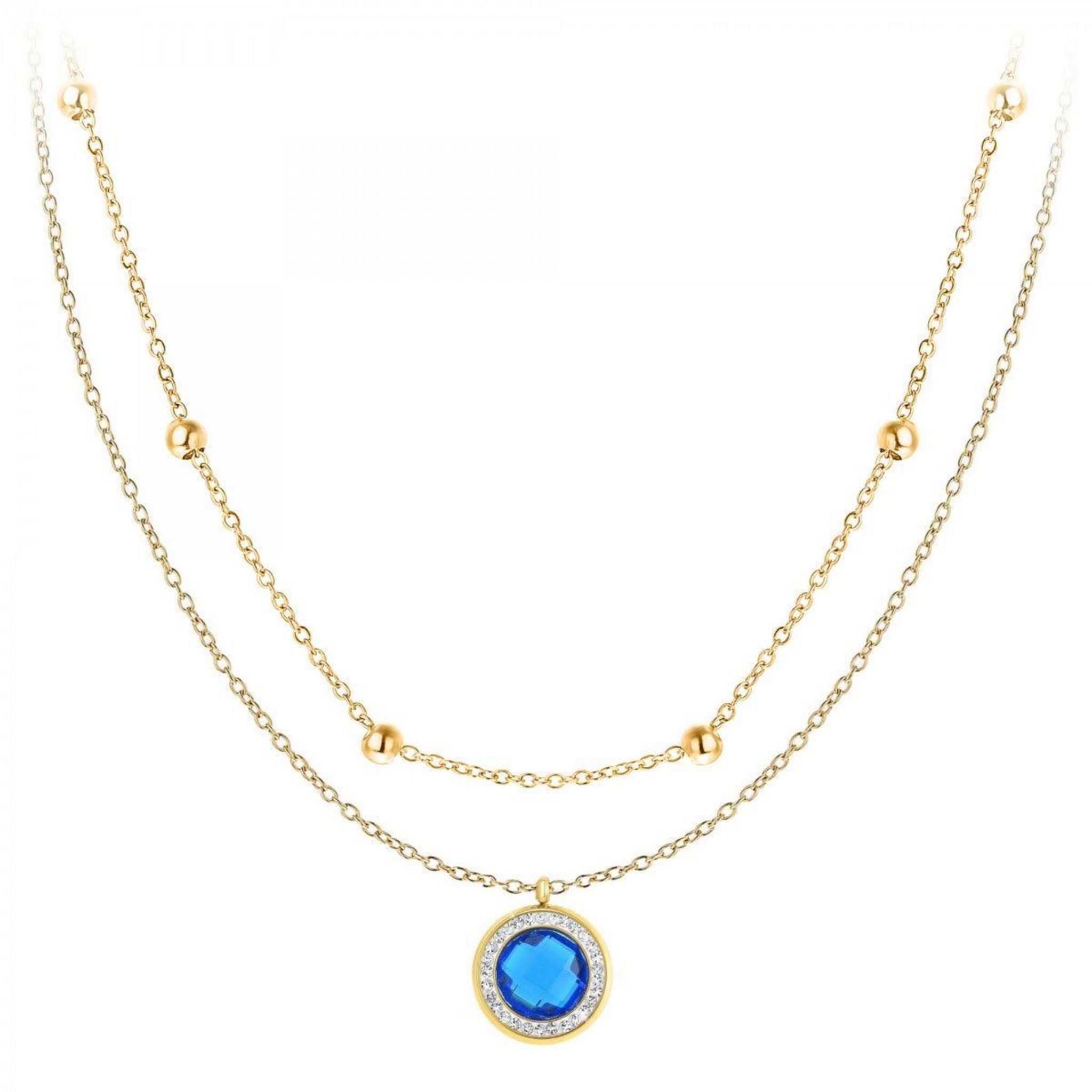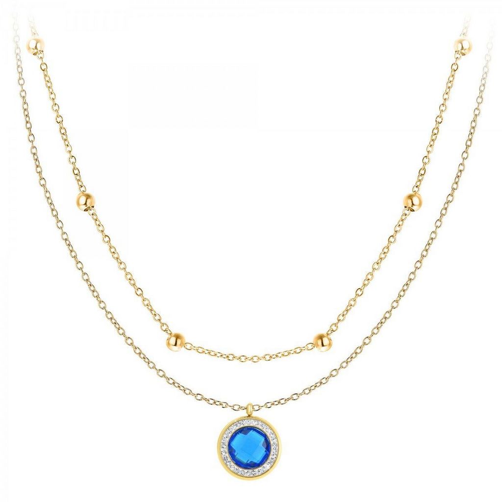 La plupart des femmes pratiquent l'art de se différencier dans leurs styles d'habillement et mettent un accent particulier sur l'harmonie de leurs bijoux. Ce lot de 2 colliers doré à l'or fin vous donne la possibilité d'être unique et apprécié lors de vos sorties. Les cristaux scintillants qui ornent ce collier entourent un anneau de couleur bleue foncée. Offrez-vous le plaisir de porter ce lot de 2 colliers fait en acier inoxydable et ressentez l'élégance, la alte et la finesse qu'il vous procure.