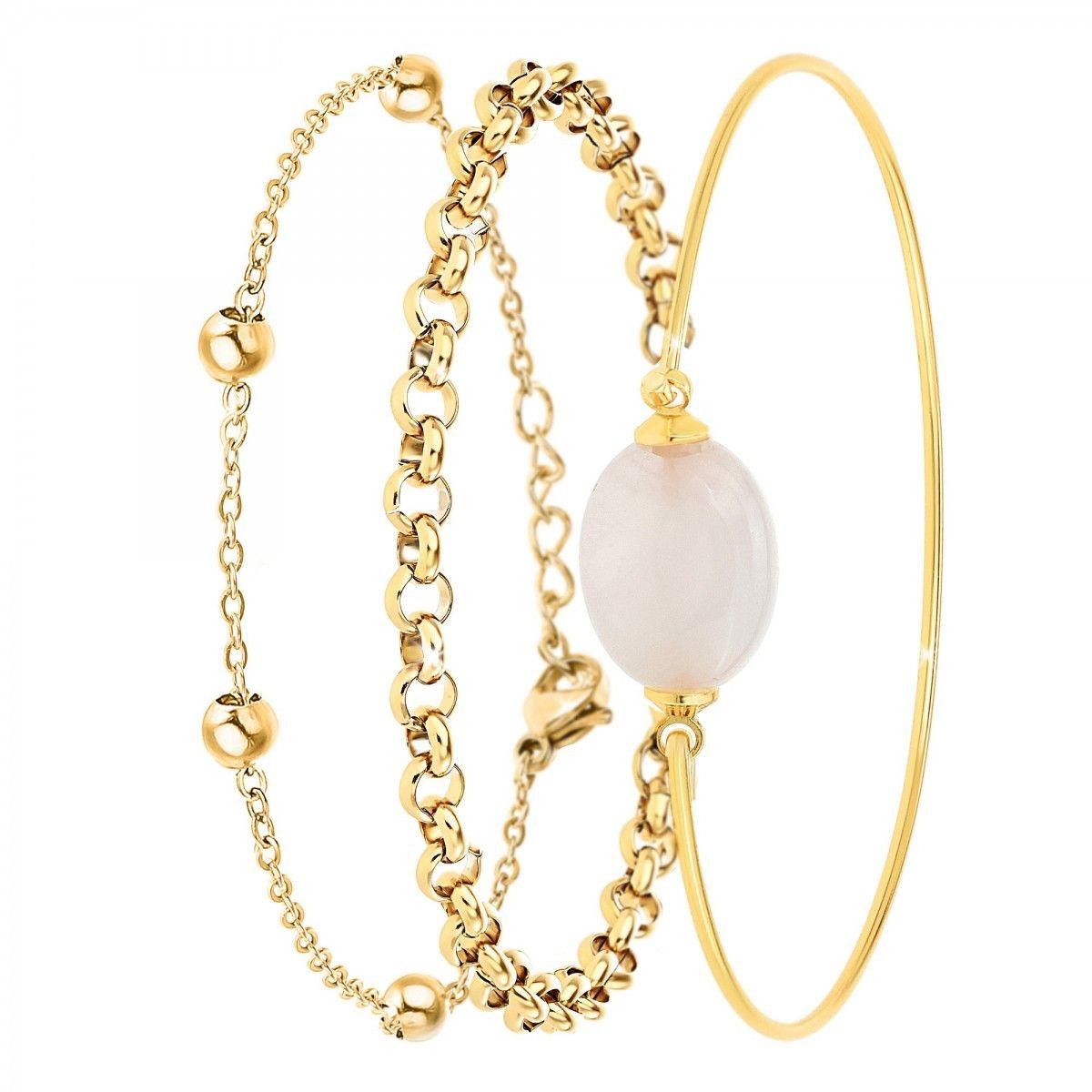 Lot de 3 bracelets SC Bohème en Laiton Finement doré orné d'un quartz rose