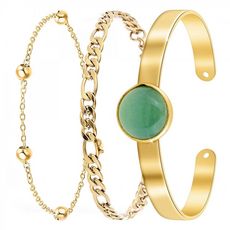 Lot de 3 bracelets SC Bohème en Laiton Finement doré orné d'une Malachite