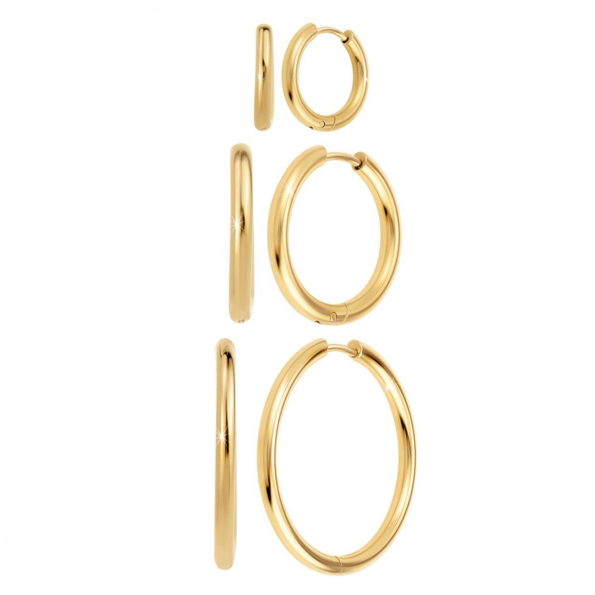 Boucles d'oreilles par SC BohèmeAcier inoxydable doré à l'or finEpaisseur : 2mmFermoir : à claquetGrandes boucles d'oreilles :Hauteur total : 30mmDiamètre : 25mmMoyennes boucles d'oreilles :Hauteur total : 20mmDiamètre : 17mmPetites boucles d'oreilles :Hauteur total : 17mmDiamètre : 11mm