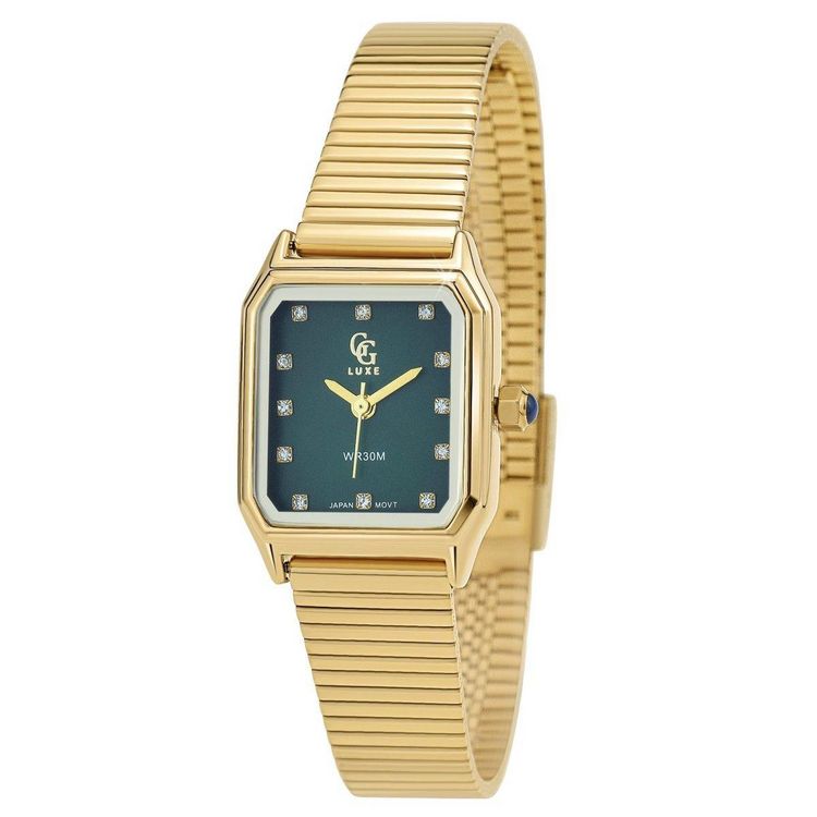 Montre femme ornée de Cristaux scintillants par SC BohèmeLargeur cadran : 22mm - Hauteur cadran : 28mm - Epaisseur : 7mmBracelet métal doré - Longueur : ajustable jusqu'à 20cm - Largeur : 10mm - Fermoir : ClipMatière : LaitonFinition : Plaquage haute résistanceVerre minéralMouvement Quartz haute fia