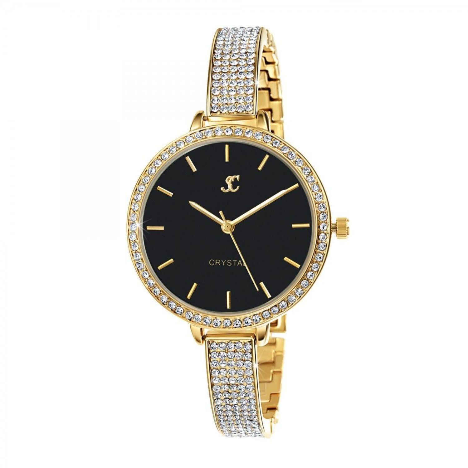 Montre ornée de Cristaux scintillants par SC BohèmeLargeur cadran : 36mm - Hauteur cadran : 36mm - Epaisseur : 9mmBracelet métal doré - Longueur : ajustable jusqu'à 19cm - Largeur : 10mm - Fermoir : ClipMatière : LaitonFinition : Plaquage haute résistanceVerre minéralMouvement Quartz haute fiabilité